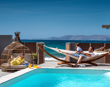 Our two elegant twin villas, Villa Anasa and Villa Zoe, offer the perfect blend of luxury, comfort, and modern amenity. Located on the seafront they offer breathtaking views of the Cretan sea.